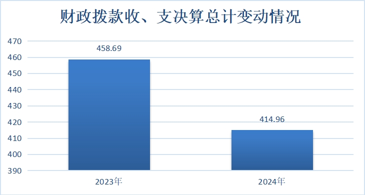 2024年度财政拨款收入、支出总计均为414.96万元。与2023年度相比,财政拨款收入总计、支出总计各减少43.73万元,下降9.53%。主要变动原因是2024年度人员减少,人员经费支出减少。