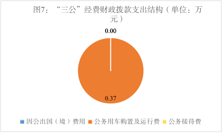 2024年度“三公”经费财政拨款支出决算中,因公出国(境)费支出决算0万元,占0%;公务用车购置及运行维护费支出决算0万元,占0%;公务接待费支出决算0.37万元,占100%。具体情况如下: