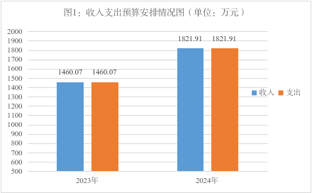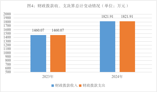 2024年度财政拨款收入、支出总计均为1821.91万元。与2023年度相比,财政拨款收入总计、支出总计各增加361.84万元,增长24.78%。主要变动原因是单位本年度项目增加。