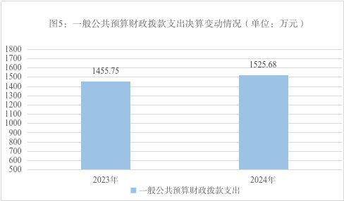 2024年度一般公共预算财政拨款支出1525.68万元,占本年支出合计的83.74%。与2023年度相比,一般公共预算财政拨款支出增加69.93万元,增长4.8%,主要变动原因是单位增加了一般公共预算基本支出。
