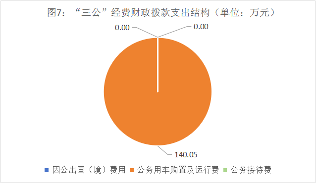 目录 公开时间:2025年9月29日 第一部分单位概况3 一、单位职责3 二、机构设置3 第二部分2024年度单位决算情况说明4 一、收入支出决算总体情况说明4 二、收入决算情况说明4 三、支出决算情况说明5 四、财政拨款收入支出决算总体情况说明6 五、一般公共预算财政拨款支出决算情况说明6 六、一般公共预算财政拨款基本支出决算情况说明9 七、财政拨款“三公”经费支出决算情况说明9 八、政府性基金预算支出决算情况说明11 九、国有资本经营预算支出决算情况说明11 十、其他重要事项的情况说明11 第三部分名词解释13 第四部分附件16 第五部分附表20 一、收入支出决算总表 二、收入决算表 三、支出决算表 四、财政拨款收入支出决算总表 五、财政拨款支出决算明细表 六、一般公共预算财政拨款支出决算表 七、一般公共预算财政拨款支出决算明细表 八、一般公共预算财政拨款基本支出决算明细表 九、一般公共预算财政拨款项目支出决算表 十、政府性基金预算财政拨款收入支出决算表 十一、国有资本经营预算财政拨款收入支出决算表 十二、国有资本经营预算财政拨款支出决算表 十三、财政拨款“三公”经费支出决算表 第一部分单位概况 一、单位职责 保障市本级无保留车辆单位符合规定条件下的公务出行。承担市委市政府重大活动用车和突发事件处置集中调配车辆服务。负责市委市政府交办的其他特别事项用车服务。负责中心车辆的管理、维修保养、调度使用及驾驶员安全教育等工作。 二、机构设置 市公车中心为公益一类事业单位,独立编制机构数和独立核算机构数均为1个。 第二部分 2024年度单位决算情况说明 一、收入支出决算总体情况说明 2024年度收入、支出总计均为385.44万元。与2023年度相比,收入、支出总计各增加18.66万元,增长5.09%。主要变动原因是单位本年新增人员1名。 (图1:收入、支出决算总计变动情况图) 二、收入决算情况说明 2024年度本年收入合计385.44万元,其中:一般公共预算财政拨款收入385.44万元,占100%;政府性基金预算财政拨款收入0万元,占0%;国有资本经营预算财政拨款收入0万元,占0%;上级补助收入0万元,占0%;事业收入0万元,占0%;经营收入0万元,占0%;附属单位上缴收入0万元,占0%;其他收入0万元,占0%。 (图2:收入决算结构图) 三、支出决算情况说明 2024年度本年支出合计385.44万元,其中:基本支出83.96万元,占21.78%;项目支出301.47万元,占78.21%;上缴上级支出0万元,占0%;经营支出0万元,占0%;对附属单位补助支出0万元,占0%。 (图3:支出决算结构图) 四、财政拨款收入支出决算总体情况说明 2024年度财政拨款收入、支出总计均为385.44万元。与2023年度相比,财政拨款收入总计、支出总计各增加18.66万元,增长5.09%。主要变动原因是单位本年新增人员1名。 (图4:财政拨款收、支决算总计变动情况) 五、一般公共预算财政拨款支出决算情况说明 (一)一般公共预算财政拨款支出决算总体情况 2024年度一般公共预算财政拨款支出385.44万元,占本年支出合计的100%。与2023年度相比,一般公共预算财政拨款支出增加18.66万元,增长5.09%。主要变动原因是单位本年新增人员1名。 (图5:一般公共预算财政拨款支出决算变动情况) (二)一般公共预算财政拨款支出决算结构情况 2024年度一般公共预算财政拨款支出385.44万元,主要用于以下方面:一般公共服务支出364.66万元,占94.61%;社会保障和就业支出10.77万元,占2.79%;卫生健康支出3.72万元,占0.97%;住房保障支出6.29万元,占1.63%。 (图6:一般公共预算财政拨款支出决算结构) (三)一般公共预算财政拨款支出决算具体情况 2024年度一般公共预算财政拨款支出决算数为385.44,完成预算100%。其中: 1.一般公共服务(类)政协事务(款)机关服务(项):支出决算为13.86万元,完成预算100%,决算数与预算数持平。 2.一般公共服务(类)政府办公厅(室)及相关机构事务(款)机关服务(项):支出决算为350.8万元,完成预算100%,决算数与预算数持平。 3.社会保障和就业(类)行政事业单位养老(款)机关事业单位基本养老保险缴费(项):支出决算为7.18万元,完成预算100%,决算数与预算数持平。 4.社会保障和就业(类)行政事业单位养老(款)机关事业单位职业年金缴费(项):支出决算为3.59万元,完成预算100%,决算数与预算数持平。 5.卫生健康(类)行政事业单位医疗(款)行政单位医疗(项):支出决算为3.72万元,完成预算100%,决算数与预算数持平。 6.住房保障(类)住房改革(款)住房公积金(项):支出决算为6.29万元,完成预算100%,决算数与预算数持平。 六、一般公共预算财政拨款基本支出决算情况说明 2024年度一般公共预算财政拨款基本支出83.96万元,其中: 人员经费73.5万元,主要包括:基本工资、津贴补贴、奖金、绩效工资、机关事业单位基本养老保险缴费、职业年金缴费、其他社会保障缴费、其他工资福利支出、住房公积金、其他对个人和家庭的补助支出等。 公用经费10.46万元,主要包括:办公费、印刷费、咨询费、物业管理费、差旅费、维修(护)费、租赁费、会议费、培训费、公务接待费、劳务费、委托业务费、工会经费、福利费、公务用车运行维护费、其他交通费、税金及附加费用、其他商品和服务支出、办公设备购置等。 七、财政拨款“三公”经费支出决算情况说明 (一)“三公”经费财政拨款支出决算总体情况说明 2024年度“三公”经费财政拨款