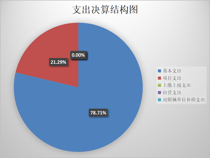 三、支出决算情况说明 2024年度本年支出合计1095.78万元,其中:基本支出862.44万元,占78.71%;项目支出233.34万元,占21.29%;上缴上级支出0万元,占0%;经营支出0万元,占0%;对附属单位补助支出0万元,占0%。 (图3:支出决算结构图)