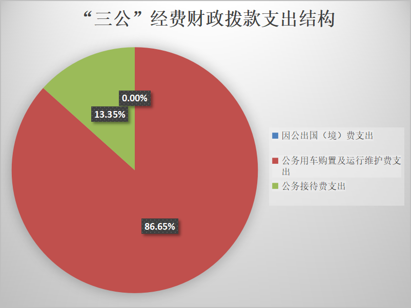 七、财政拨款“三公”经费支出决算情况说明 (一)“三公”经费财政拨款支出决算总体情况说明 2024年度“三公”经费财政拨款支出决算为14.02万元,完成预算84.89%,较上年度减少1.64万元,下降10.47%。决算数小于预算数的主要原因是接待费用略有减少。 (二)“三公”经费财政拨款支出决算具体情况说明 2024年度“三公”经费财政拨款支出决算中,因公出国(境)费支出决算0万元,占0%;公务用车购置及运行维护费支出决算12.14万元,占86.65%;公务接待费支出决算1.87万元,占13.35%。具体情况如下: (图7:“三公”经费财政拨款支出结构) 1.因公出国(境)经费支出0万元,完成预算100%。全年安排因公出国(境)团组0次,出国(境)0人。因公出国(境)支出决算比2023年持平。 2.公务用车购置及运行维护费支出12.14万元,完成预算83.21%。公务用车购置及运行维护费支出决算比2023年度减少1.62万元,下降11.77%。主要原因是维修费减少。 截至2024年12月31日,单位共有公务用车6辆,其中:轿车2辆、越野车3辆、载客汽车1辆。 公务用车运行维护费支出12.14万元。主要用于检察业务所需的公务用车燃料费、维修费、过路过桥费、保险费等支出。 3.公务接待费支出1.87万元,完成预算98.40%。公务接待费支出决算比2023年度减少0.03万元,下降1.58%。其中: 国内公务接待支出1.87万元,主要用于执行接待考察调研、检查指导等公务活动开支的交通费、住宿费和用餐费。国内公务接待38批次,267人次(不包括陪同人员),共计支出1.87万元,具体内容包括:上级和同级检察机关执法办案协作和工作交流等必需的接待支出。 外事接待支出0万元。