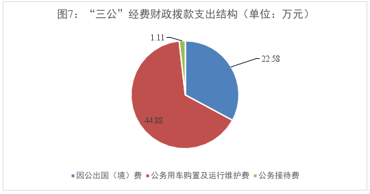 目录 公开时间:2025年9月29日 第一部分 部门概况 一、部门职责 二、机构设置 第二部分 2024年度部门决算情况说明 一、收入支出决算总体情况说明 二、收入决算情况说明 三、支出决算情况说明 四、财政拨款收入支出决算总体情况说明 五、一般公共预算财政拨款支出决算情况说明 六、一般公共预算财政拨款基本支出决算情况说明 七、财政拨款“三公”经费支出决算情况说明 八、政府性基金预算支出决算情况说明 九、国有资本经营预算支出决算情况说明 十、其他重要事项的情况说明 第三部分 名词解释 第四部分 附件 第五部分 附表 一、收入支出决算总表 二、收入决算表 三、支出决算表 四、财政拨款收入支出决算总表 五、财政拨款支出决算明细表 六、一般公共预算财政拨款支出决算表 七、一般公共预算财政拨款支出决算明细表 八、一般公共预算财政拨款基本支出决算明细表 九、一般公共预算财政拨款项目支出决算表 十、政府性基金预算财政拨款收入支出决算表 十一、国有资本经营预算财政拨款收入支出决算表 十二、国有资本经营预算财政拨款支出决算表 十三、财政拨款“三公”经费支出决算表 第一部分 部门概况一、部门职责(一)指导全市行政机关公文处理工作,办理发送市政府、市政府办公室的文电。 (二)协助市政府领导组织起草或审核以市政府、市政府办公室名义发布的公文。 (三)负责市政府重大活动的组织协调工作,负责市政府会议的会务服务工作。 (四)研究市政府部门和县(区)政府请示市政府的事项,提出拟办意见,报市政府领导审批。 (五)围绕市政府中心工作和市政府领导的指示,组织专题调查研究,及时反映情况,提出政策性建议。 (六)督促检查市政府决定事项及市政府领导指示的执行落实情况,及时向市政府领导报告。 (七)负责市政府值班工作,指导、督查县(区)政府和市政府部门值班工作,及时报告重要情况。 (八)负责指导、监督全市政府系统电子政务工作和政府网站建设。 (九)负责全市政务信息组织、编写、报送,负责政府信息公开工作和机关行政效能建设工作的组织、指导、监督、考核。 (十)负责全市民生工程督办工作。组织办理涉及市政府工作的党代表提案、人大代表建议和政协提案。 (十一)负责全市人民防空工作。 (十二)承办市政府交办的其他事项。 二、机构设置眉山市人民政府办公室含市政府办机关(行政单位)和两个下属非独立核算事业单位。纳入市政府办公室2024年度部门决算编制范围的预算单位包括: 1.市政府办公室 2.市政府总值班室 3.市政府发展研究中心 第二部分 2024年度部门决算情况说明一、收入支出决算总体情况说明 2024年度收入、支出总计均为3126.43万元。与2023年度相比,收入、支出总计各减少47.95万元,下降1.51%,与上年基本持平。 二、收入决算情况说明 2024年度本年收入合计3126.43万元,其中:一般公共预算财政拨款收入3126.43万元,占100%。 三、支出决算情况说明 2024年度本年支出合计3126.43万元,其中:基本支出2665.73万元,占85.26%;项目支出460.7万元,占14.74%。 四、财政拨款收入支出决算总体情况说明 2024年度财政拨款收入、支出总计均为3126.43万元。与2023年度相比,财政拨款收入总计、支出总计各减少47.95万元,下降1.51%,与上年基本持平。 五、一般公共预算财政拨款支出决算情况说明 (一)一般公共预算财政拨款支出决算总体情况 2024年度一般公共预算财政拨款支出3126.43万元,占本年支出合计的100%。与2023年度相比,一般公共预算财政拨款支出减少47.95万元,下降1.51%,与上年基本持平。 (二)一般公共预算财政拨款支出决算结构情况 2024年度一般公共预算财政拨款支出3126.43万元,主要用于以下方面:一般公共服务支出2538.72万元,占81.20%;社会保障和就业支出295.08万元,占9.44%;卫生健康支出107.55万元,占3.44%;住房保障支出185.08万元,占5.92%。 (三)一般公共预算财政拨款支出决算具体情况 2024年度一般公共预算财政拨款支出决算数为3126.43万元,完成预算100%。其中: 1.一般公共服务支出(类)政府办公厅(室)及相关机构事务(款)行政运行(项):支出决算为2051.49万元,完成预算100%,决算数与预算数持平。 2.一般公共服务支出(类)政府办公厅(室)及相关机构事务(款)一般行政管理事务(项):支出决算为460.7万元,完成预算100%,决算数与预算数持平。 3.一般公共服务支出(类)政府办公厅(室)及相关机构事务(款)机关服务(项):支出决算为23.17万元,完成预算100%,决算数与预算数持平。 4.一般公共服务支出(类)政府办公厅(室)及相关机构事务(款)其他政府办公厅(室)及相关机构事务支出(项):支出决算为3.36万元,完成预算100%,决算数与预算数持平。 5.社会保障和就业支出(类)行政事业单位养老支出(款)机关事业单位基本养老保险缴费支出(项):支出决算为200.76万元,完成预算100%,决算数与预算数持平。 6.社会保障和就业支出(类)行政事业单位养老支出(款)机关事业单位职业年金缴费支出(项):支出决算为94.32万元,完成预算100%,决算数与预算数持平。 7.卫生健康支出(类)行政事业单位医疗(款)行政单位医疗(项):支出决算为107.55万元,完成预算100%,决算数与预算数持平。 8.住房保障支出(类)住房改革支出(款)住房公积金(项):支出决算为185.08万元,完成预算100%,决算数与预算数持平。 六、一般公共预算财政拨款基本支出决算情况说