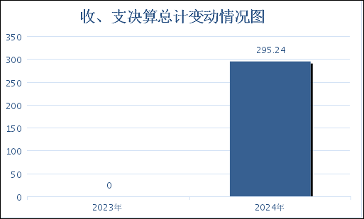 四、财政拨款收入支出决算总体情况说明 2024年度财政拨款收入、支出总计均为295.24万元。与2023年度相比,财政拨款收入总计、支出总计各增加295.24万元,增100%。主要变动原因是市委社会工作部是2024年4月新成立单位,2023年无数据。