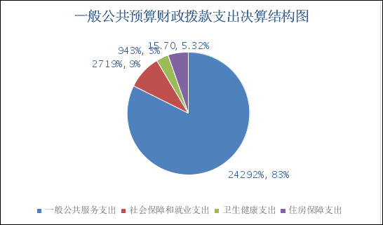 (二)一般公共预算财政拨款支出决算结构情况 2024年度一般公共预算财政拨款支出295.24万元,主要用于以下方面:一般公共服务支出242.92万元,占82.28%;社会保障和就业支出27.19万元,占9.21%;卫生健康支出9.43万元,占3.19%;住房保障支出15.70万元,占5.32%。