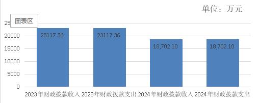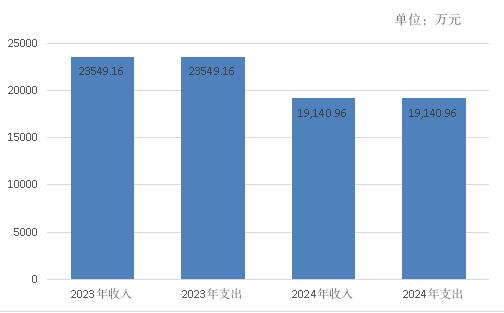 图3:支出决算结构图 2024年度财政拨款收入、支出总计均为18702.1万元。与2023年度相比,财政拨款收入总计、支出总计各减少4415.26万元,下降19.1%。主要变动原因是2024年减少城市新中心体育公园建设资金2000万元,“9+3”资金较2023年减少1500万元,体彩公益金较2023年使用减少500万元。 图4:财政拨款收、支决算总计变动情况