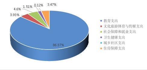 图5:一般公共预算财政拨款支出决算变动情况 2024年度一般公共预算财政拨款支出16067.48万元,主要用于以下方面:教育支出13877.89万元,占86.37%;文化旅游体育与传媒支出630.93万元,占3.93%;社会保障和就业支出738.36万元,占4.6%;卫生健康支出242.79万元,占1.51%;城乡社区支出19.22万元,占0.12%;住房保障支出558.29万元,占3.47%。 图6:一般公共预算财政拨款支出决算结构 2024年度一般公共预算支出决算数为16067.48万元,完成预算100%。其中: 1.教育支出(类)教育管理事务(款)行政运行(项):支出决算为916.94万元,完成预算100%,决算数等于预算数。 2.教育支出(类)教育管理事务(款)一般行政管理事务(项):支出决算为75.11万元,完成预算100%,决算数等于预算数。 3.教育支出(类)教育管理事务(款)其他教育管理事务支出(项):支出决算为1086.32万元,完成预算100%,决算数等于预算数。 4.教育支出(类)普通教育(款)学前教育(项):支出决算为694.48万元,完成预算100%,决算数等于预算数。 5.教育支出(类)普通教育(款)小学教育(项):支出决算为2843.92万元,完成预算100%,决算数等于预算数。 6.教育支出(类)普通教育(款)高中教育(项):支出决算为24万元,完成预算100%,决算数等于预算数。 7.教育支出(类)普通教育(款)其他普通教育支出(项):支出决算为2.31万元,完成预算100%,决算数等于预算数。 8.教育支出(类)职业教育(款)中等职业教育(项):支出决算为5972.35万元,完成预算100%,决算数等于预算数。 9.教育支出(类)成人教育(款)成人高等教育(项):支出决算为203.96万元,完成预算100%,决算数等于预算数。 10.教育支出(类)进修及培训(款)培训支出(项):支出决算为67.53万元,完成预算100%,决算数等于预算数。 11.教育支出(类)其他教育支出(款)其他教育支出(项):支出决算为1990.97万元,完成预算100%,决算数等于预算数。 12.文化旅游体育与传媒支出(类)体育(款)体育训练(项):支出决算为11.01万元,完成预算100%,决算数等于预算数。 13.文化旅游体育与传媒支出(类)体育(款)体育场馆(项):支出决算为184.27万元,完成预算100%,决算数等于预算数。 14.文化旅游体育与传媒支出(类)体育(款)群众体育(项):支出决算为21.15万元,完成预算100%,决算数等于预算数。 15.文化旅游体育与传媒支出(类)体育(款)其他体育支出(项):支出决算为414.5万元,完成预算100%,决算数等于预算数。 16.社会保障和就业支出(类)行政事业单位养老支出(款)机关事业单位基本养老保险缴费支出(项):支出决算为531.87万元,完成预算100%,决算数等于预算数。 17.社会保障和就业支出(类)行政事业单位养老支出(款)机关事业单位职业年金缴费支出(项):支出决算为205.18万元,完成预算100%,决算数等于预算数。 18.社会保障和就业支出(类)其他社会保障和就业支出(款)其他社会保障和就业支出(项):支出决算为1.31万元,完成预算100%,决算数等于预算数。 19.卫生健康支出(类)行政事业单位医疗(款)行政单位医疗(项):支出决算为48.88万元,完成预算100%,决算数等于预算数。 20.卫生健康支出(类)行政事业单位医疗(款)事业单位医疗(项):支出决算为193.91万元,完成预算100%,决算数等于预算数。 21.城乡社区支出(类)其他城乡社区支出(款)其他城乡社区支出(项):支出决算为19.22万元,完成预算100%,决算数等于预算数。 22.住房保障支出(类)住房改革支出(款)住房公积金(项):支出决算为558.29万元,完成预算100%,决算数等于预算数。 2024年度一般公共预算财政拨款基本支出6467.22万元,其中: 人员经费5878.67万元,主要包括:基本工资、津贴补贴、奖金、伙食补助费、绩效工资、机关事业单位基本养老保险缴费、职业年金缴费、其他社会保障缴费、其他工资福利支出、离休费、退休费、抚恤金、生活补助、医疗费补助、奖励金、住房公积金、其他对个人和家庭的补助支出等。 2024年度“三公”经费财政拨款支出决算为14.93万元,完成预算88.83%,较上年度减少1.33万元,下降8.18%。决算数小于预算数的主要原因是进一步压减开支。 2024年度“三公”经费财政拨款支出决算中,因公出国(境)费支出决算0万元,占0%;公务用车购置及运行维护费支出决算12.45万元,占83.39%;公务接待费支出决算2.48万元,占16.61%。具体情况如下: 图7:“三公”经费财政拨款支出结构 1.因公出国(境)经费支出0万元,完成预算0%。全年安排因公出国(境)团组0次,出国(境)0人。 2.公务用车购置及运行维护费支出12.45万元,完成预算97.49%。公务用车购置及运行维护费支出决算比2023年度增加0.07万元,增长0.57%。 其中:公务用车购置支出0万元。截至2024年12月31日,单位共有公务用车5辆,其中:轿车4辆、越野车1辆。 公务用车运行维护费支出12.45万元。主要用于保障教体监督检查、各项会议等所需的公务用车燃料费、维修费、过路过桥费、保险费等支出。 3.公务接待费支出2.48万元,完成预算61.39%。公务接待费支出决算比2023年度减少1.4万元,下降36.08%。主要原因是公务接待次数和人数减少。其中: 国内公务接待支出2.48万元,主要用于开展业务活动开支的用餐费。国内公务接待28批次,187人次(不包括陪同人员),共计支出2.48万元,具体内容包括:接待上级有关部门来眉开展项目检查调研,其他地市部门来眉考察合作、学习交流等。 外事接待支出0万元。 2024年度政府性基金预算财政拨款支出2634.62万元,占本年支出合计的13.81%。与2023年度相比,政府性基金预算财政拨款支出减少265.5