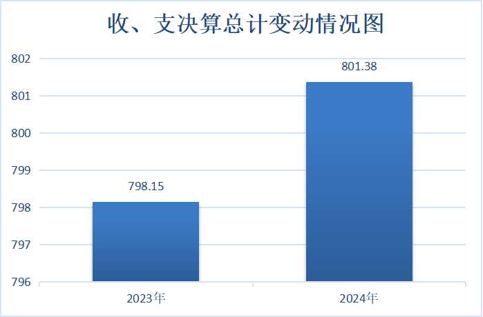 2024年度收入、支出总计均为801.38万元。与2023年度798.15万元相比,收入、支出总计各增加3.23万元,增长0.4%。主要变动原因是单位项目增加。