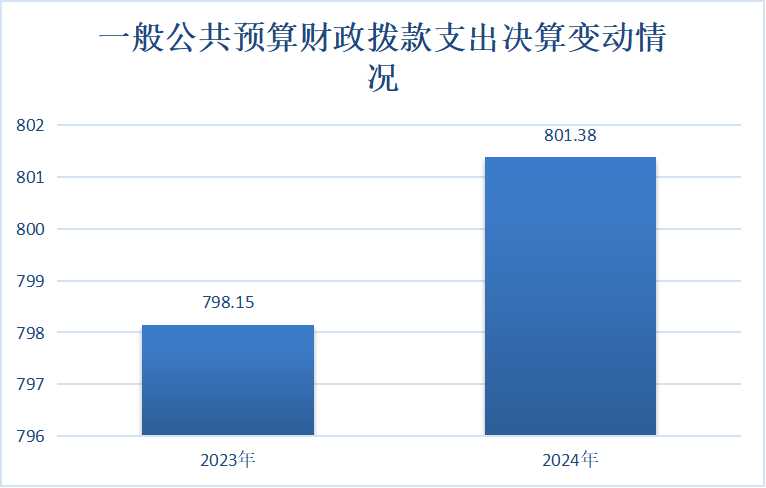 2024年度一般公共预算财政拨款支出801.38万元,占本年支出合计的100%。与2023年度798.15万元相比,一般公共预算财政拨款支出增加3.23万元,增长0.4%。主要变动原因是单位项目增加。