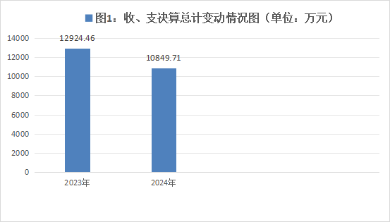 2024年度财政拨款收入、支出总计均为10849.71万元。与2023年度相比,财政拨款收入总计、支出总计各减少2074.75万元,下降16.05%。主要变动原因:一是根据工作部署和规范要求,相关运行经费纳入本级预算;二是政府性基金预算项目支出减少。