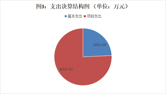 三、支出决算情况说明 2024年度本年支出合计10849.71万元,其中:基本支出2632.09万元,占24.26%;项目支出8217.62万元,占75.74%;上缴上级支出0万元,占0%;经营支出0万元,占0%;对附属单位补助支出0万元,占0%。