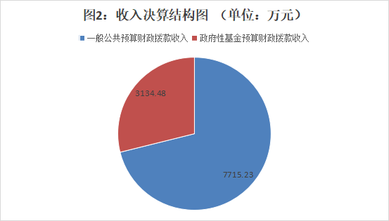 二、收入决算情况说明 2024年度本年收入合计10849.71万元,其中:一般公共预算财政拨款收入7715.23万元,占71.11%;政府性基金预算财政拨款收入3134.48万元,占28.89%%;国有资本经营预算财政拨款收入0万元,占0%;上级补助收入0万元,占0%;事业收入0万元,占0%;经营收入0万元,占0%;附属单位上缴收入0万元,占0%;其他收入0万元,占0%。