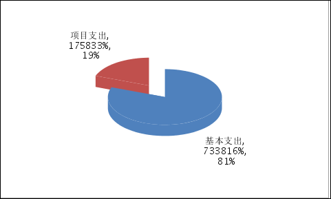 三、支出决算情况说明 2024年度本年支出合计9096.5万元,其中:基本支出7338.16万元,占80.67%;项目支出1758.33万元,占19.33%;上缴上级支出0万元,占0%;经营支出0万元,占0%;对附属单位补助支出0万元,占0%。 图3:支出决算结构图