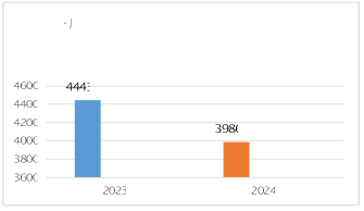五、一般公共预算财政拨款支出决算情况说明 (一)一般公共预算财政拨款支出决算总体情况 2024年度一般公共预算财政拨款支出3986.38万元,占本年支出合计的97.73%。与2023年度相比,一般公共预算财政拨款支出减少457.49万元,下降10.29%。主要变动原因是2024年度项目支出减少。 (图5:一般公共预算财政拨款支出决算变动情况)(柱状图)