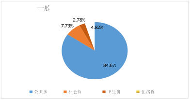 (二)一般公共预算财政拨款支出决算结构情况 2024年度一般公共预算财政拨款支出3986.38万元,主要用于以下方面:公共安全支出(类)支出3375.21万元, 占84.67%;社会保障和就业(类)支出308.07万元,占7.73%;卫生健康支出(类)支出110.92万元,占2.78%;住房保障(类)支出192.18万元,占4.82%。 (图6:一般公共预算财政拨款支出决算结构)(饼状图)
