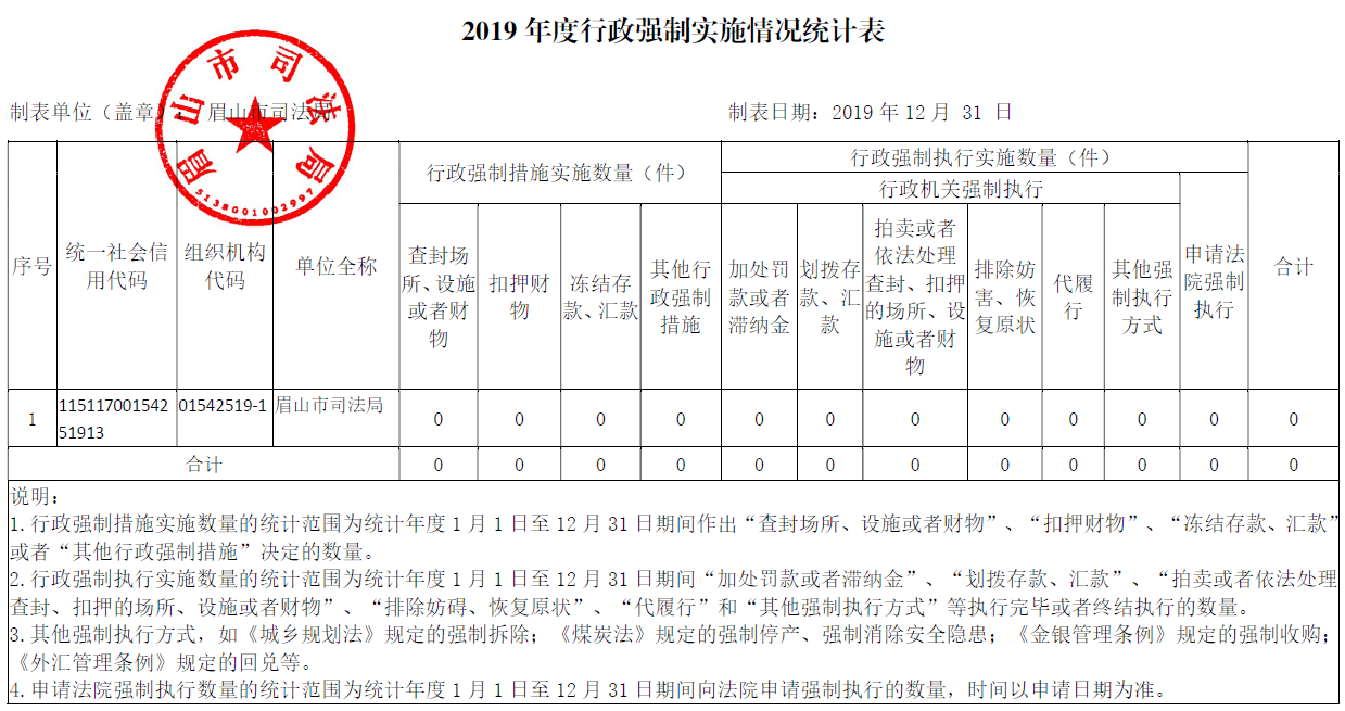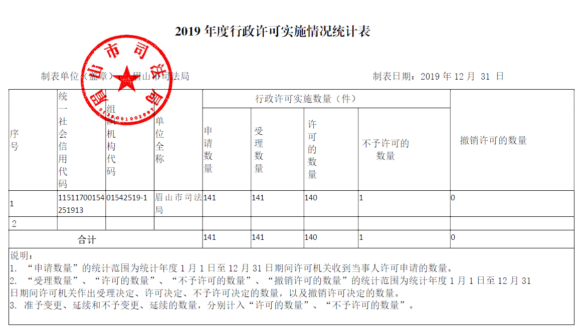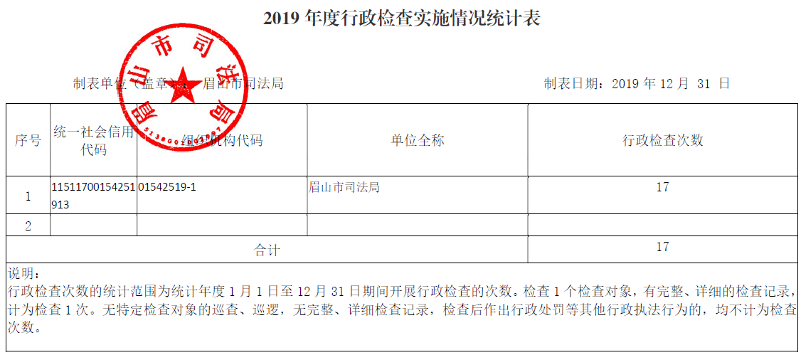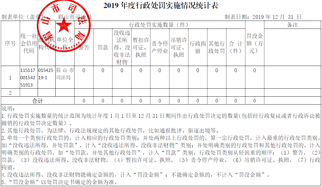 制表单位(盖章): 眉山市司法局 制表日期:2019年12月 31 日 |