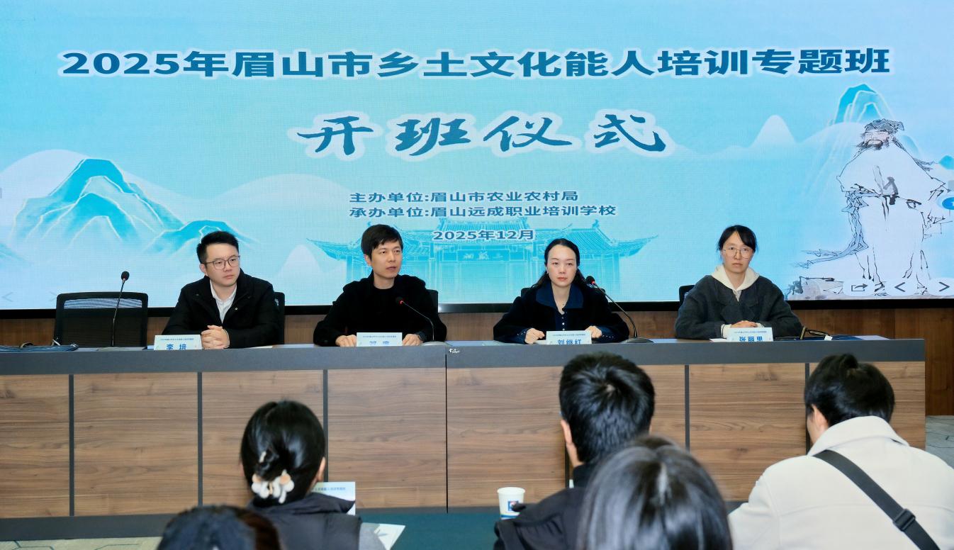 2025年12月3日,由市农业农村局主办、眉山远成职业培训学校承办的“2025年眉山市乡土文化能人培训专题班”在眉山苏苑大酒店顺利开班,开班仪式由市农业农村局家庭农场发展科科长刘继红主持,市农业农村局总经济师邓廉作开班动员。 邓廉同志在动员时指出,眉山素有“千载诗书城,人文第一州”之称,三苏文脉和东坡文化赋予眉山厚重的文化内涵,要求学员要坚持以习近平总书记来川视察重要指示精神为指引,从做文化根脉的“守护者”、做文旅融合的“开拓者”、做人才队伍的“培育者”、做文明风尚的“引领者”。 此次培训,紧扣乡村文化振兴重点任务,精心设计三大核心模块:一是政策解读,邀请专家学者深度解析农耕文化保护、文艺赋美乡村、农文旅融合等最新政策;二是实训实践,组织学员在丹棱县幸福古村、洪雅县柳江古镇等“乡村文化振兴”示范点,围绕乡村旅游发展规划、文体活动策划、数字文化传播进行实训实习;三是省外考察,赴广西桂林市、柳州市、南宁市,交流考察广西推动乡村经济与文化协同发展的经验做法和典型案例。 开班后,市农业农村局将按照农业农村厅相关要求,全程做好培训跟班,加强质量监管,保质保量完成培训教学、系统录入、后续跟踪服务等各项培育环节,确保培训取得实效。
