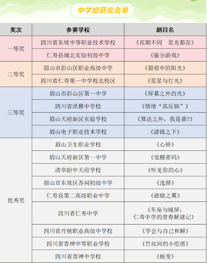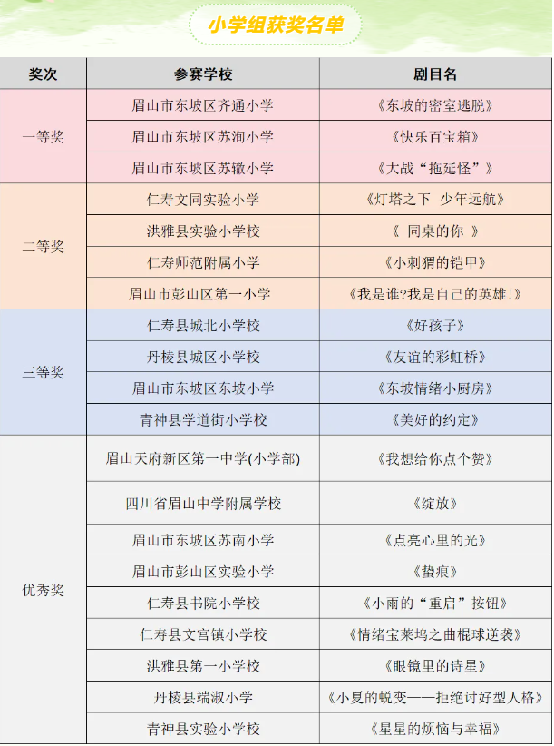 | 眉山市中小学校园心理情景剧大赛圆满结束 |