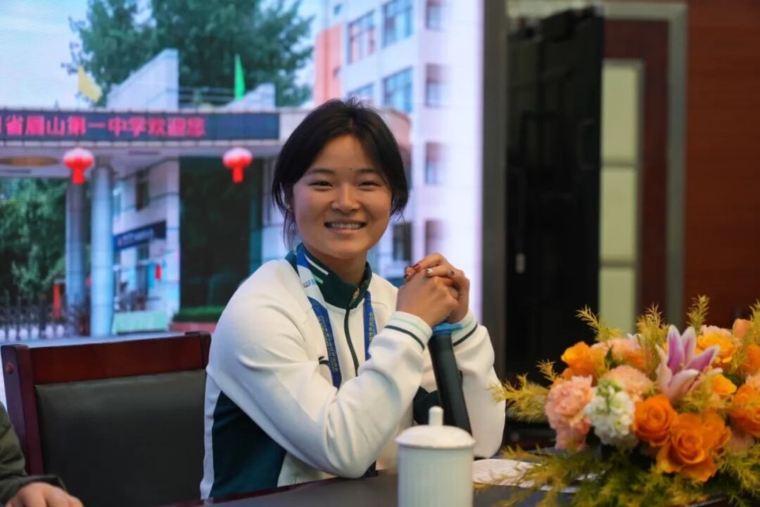 作为成都世运会火炬点火手,徐露不仅在世界赛场上为国争光,更在开幕式上点燃了象征团结与希望的主火炬。当她带着这份荣耀回到母校时,东坡小学和眉山一中的校园沸腾了。 “点燃世运会主火炬的时候,我想起了在眉山一中操场上奔跑的日子,也想起了更早在东坡小学第一次接触体育时的新奇。”她说,“是母校给了我最初的力量和勇气,让我明白了坚持的意义。” 宣讲会上,徐露分享了她在眉山一中的成长点滴,也追溯了更早的根基。她坦言,体育训练与学业的平衡曾是她面临的最大挑战,“那些早起训练、晚归学习的日子,现在想来都是最宝贵的财富。” 她还特别感谢了自己的小学老师:“他们从不认为体育训练会影响学习,反而鼓励我在两个领域都追求卓越。这种从小学到中学一以贯之的全面教育理念,让我学会了如何合理分配时间,如何在压力中保持专注。”