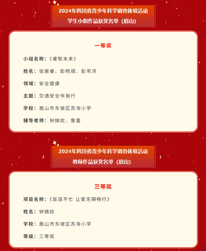 2024年四川省青少年科学调查体验活动评选揭晓!眉山两件作品上榜